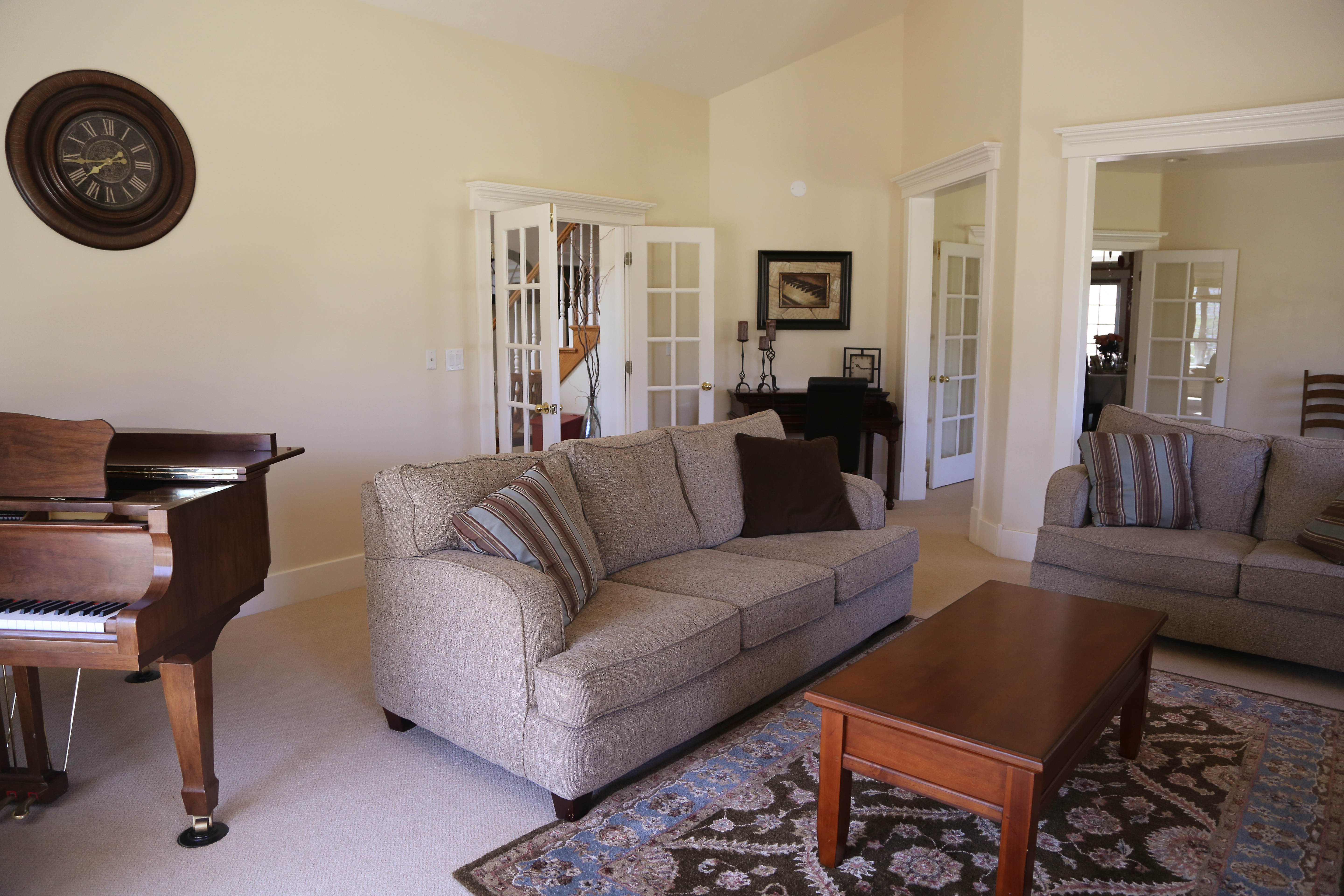 The Ranch Home is large, well-appointed home that easily accommodates large groups with its large gathering spaces, including a recreation room, multiple family rooms, large living and dining spaces (boasting a beautiful Grand piano) and ample kitchen space for group cooking. There are 10 large bedrooms (nine with attached private bathrooms) that comfortably sleep 4-6 guests each. See our lodging page for details. If yours is a very large group, consider booking the Bunk House as well.